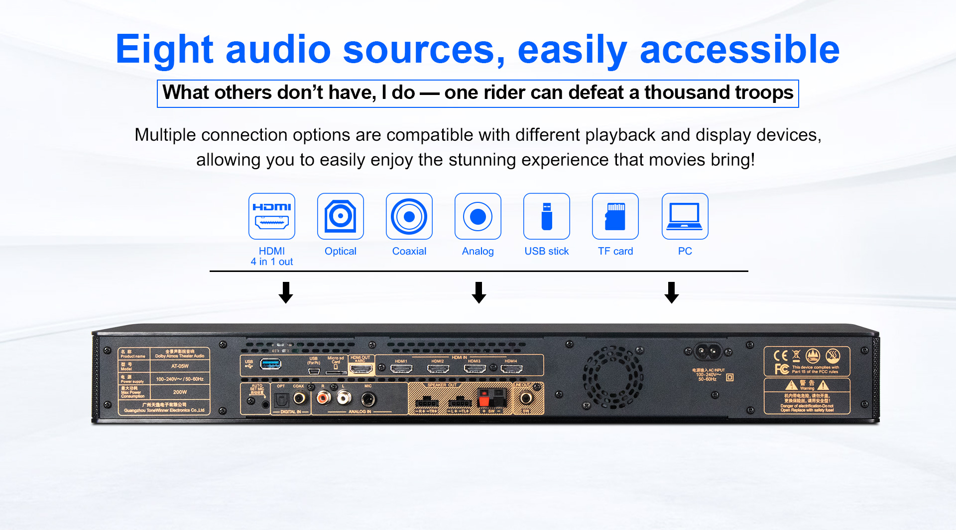 Das Tonewinner YX-02P ist ein All-in-One-Heimkinosystem, das Dolby Atmos Surround-Sound, professionelles Karaoke, HiFi-Musik und Gaming vereint. Es verfügt über ein 5.1.4-Lautsprechersystem und unterstützt die immersiven Audioformate Dolby Atmos und DTS:X. Zusätzlich bietet es 4K-Video für ein unvergleichliches, immersives Erlebnis. Das System bietet professionellen 5.1.4-Kanal-Surround-Sound für Karaoke, Steuerung per Smartphone-App, USB-/TF-Kartenkompatibilität, verlustfreie drahtlose Übertragung und eARC Audio Return Channel.