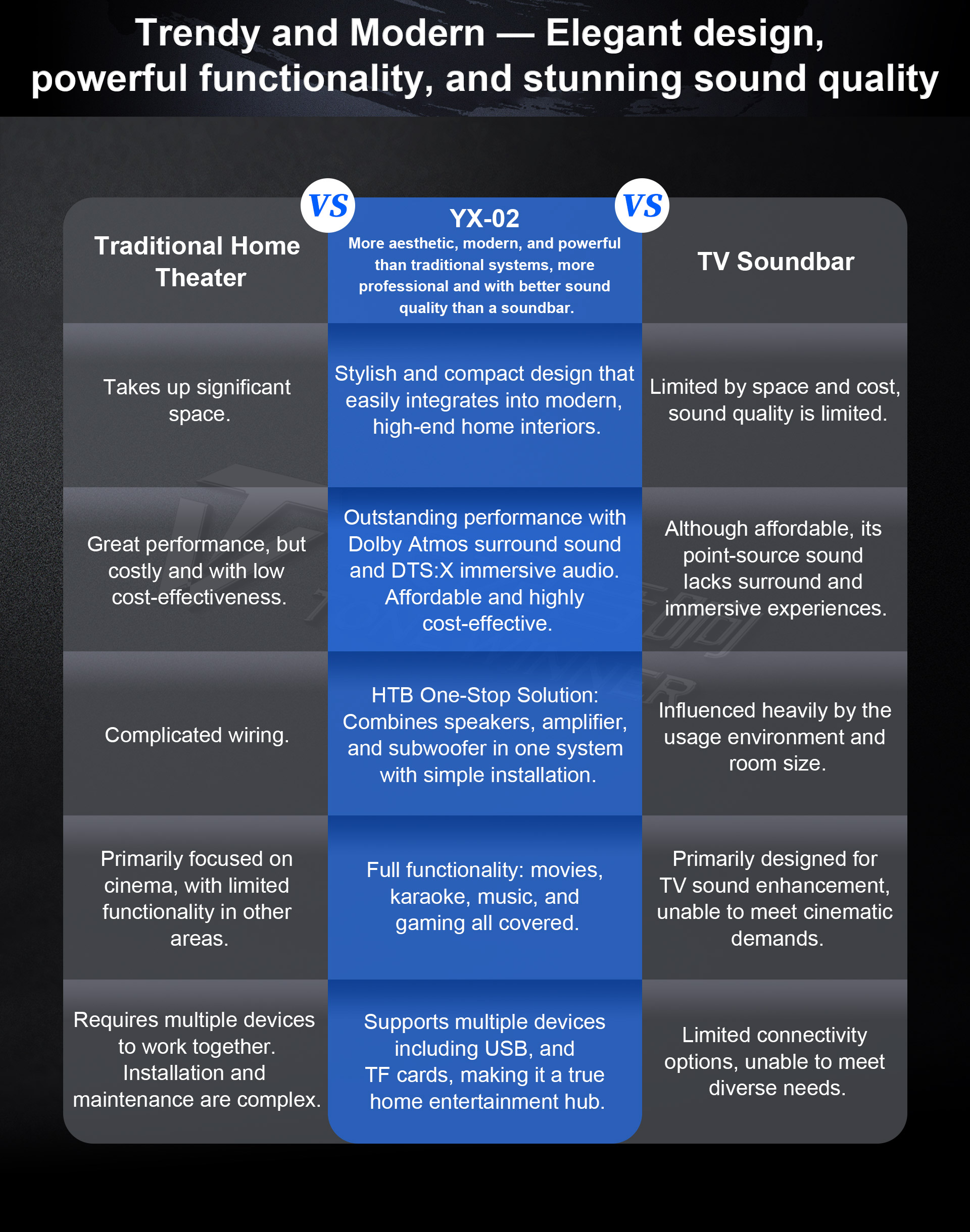 Vereint Dolby Atmos Surround-Sound, professionelles KTV, Hi-Fi-Musik und Gaming-Erlebnisse