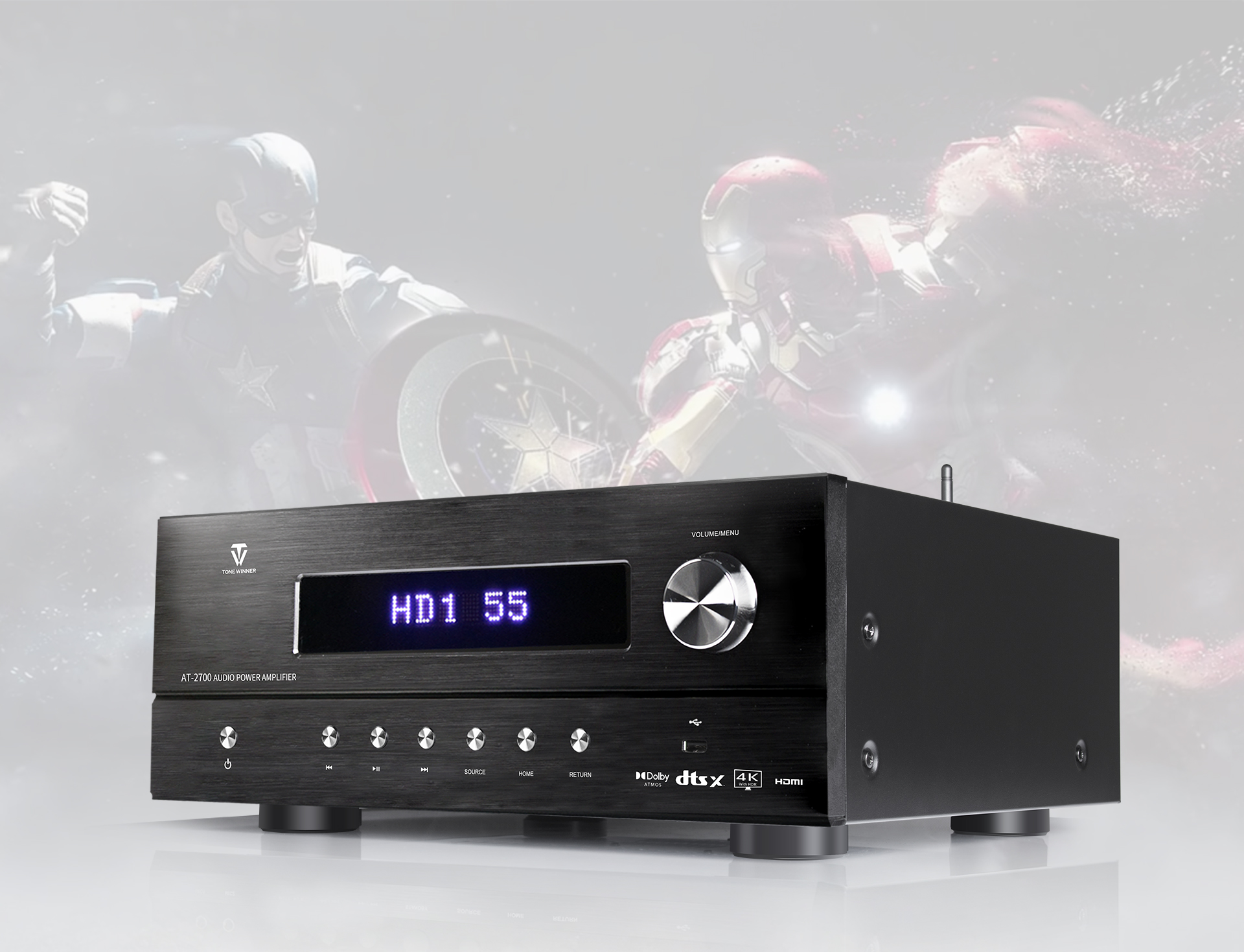 Der AT-2700 ist ein AV-Receiver mit integriertem Verstärker, der Dolby Atmos, DTS:X, 4K, Dolby Vision, HDR und weitere Formate unterstützt. Er bietet außerdem 5.1.2-Dekodierung, Bluetooth, 4 HDMI-Eingänge und 2 -Ausgänge, CEC-Steuerung, OSD-Menü, RS232, Steuerung per Smartphone-App und vieles mehr. Als eine der zehn führenden Audiomarken in China verfügt Tonewinner über mehr als 30 Jahre Erfahrung in der Entwicklung und Herstellung von Akustikprodukten. Als Originalhersteller begrüßt Tonewinner Distributoren, Partner und Kunden weltweit.