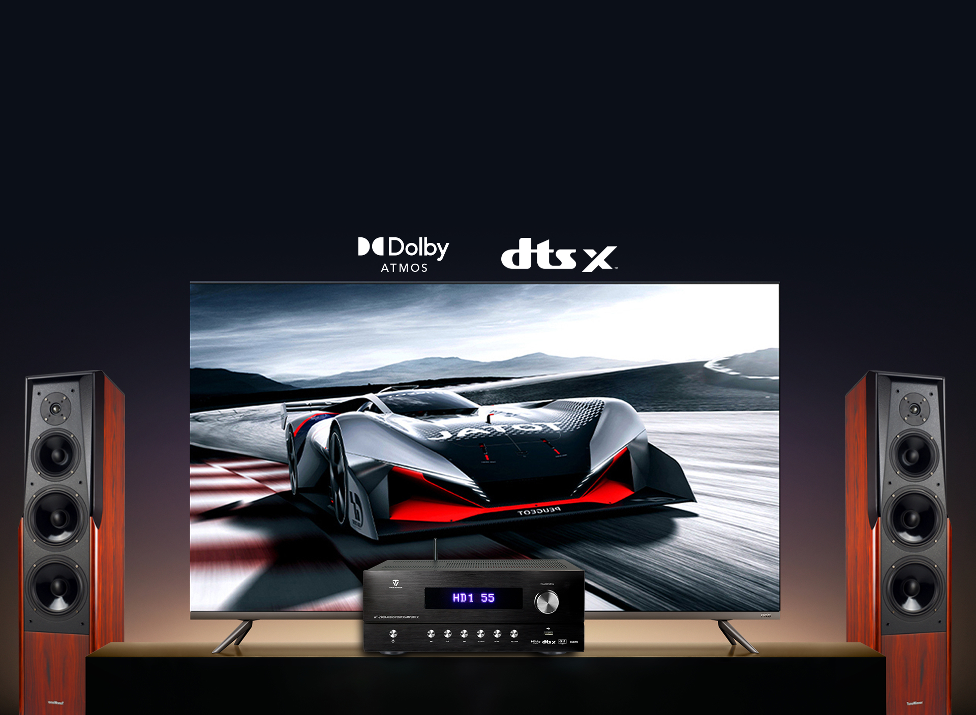 Es unterstützt Dolby Atmos 5.1.2 und DTS:X-Dekodierung für ein 3D-Klangerlebnis mit mehr Tiefe und Detailreichtum. Dank dreier Subwoofer-Anschlüsse ist auch ein 5.3.2-Lautsprechersystem möglich. Zudem kann es als eigenständiger Vorverstärker in Kombination mit einem Verstärker und Subwoofern für ein noch beeindruckenderes Klangerlebnis genutzt werden.