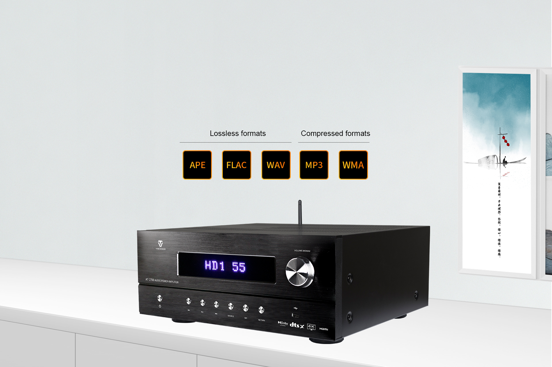 Der AT-2700 ist ein AV-Receiver mit integriertem Verstärker, der Dolby Atmos, DTS:X, 4K, Dolby Vision, HDR und weitere Formate unterstützt. Er bietet außerdem 5.1.2-Dekodierung, HDMI 4 In/2 Out, CEC-Steuerung, OSD-Menü, RS232, Steuerung per Smartphone-App und vieles mehr. Als Originalhersteller begrüßt Tonewinner Distributoren, Partner und Kunden weltweit.