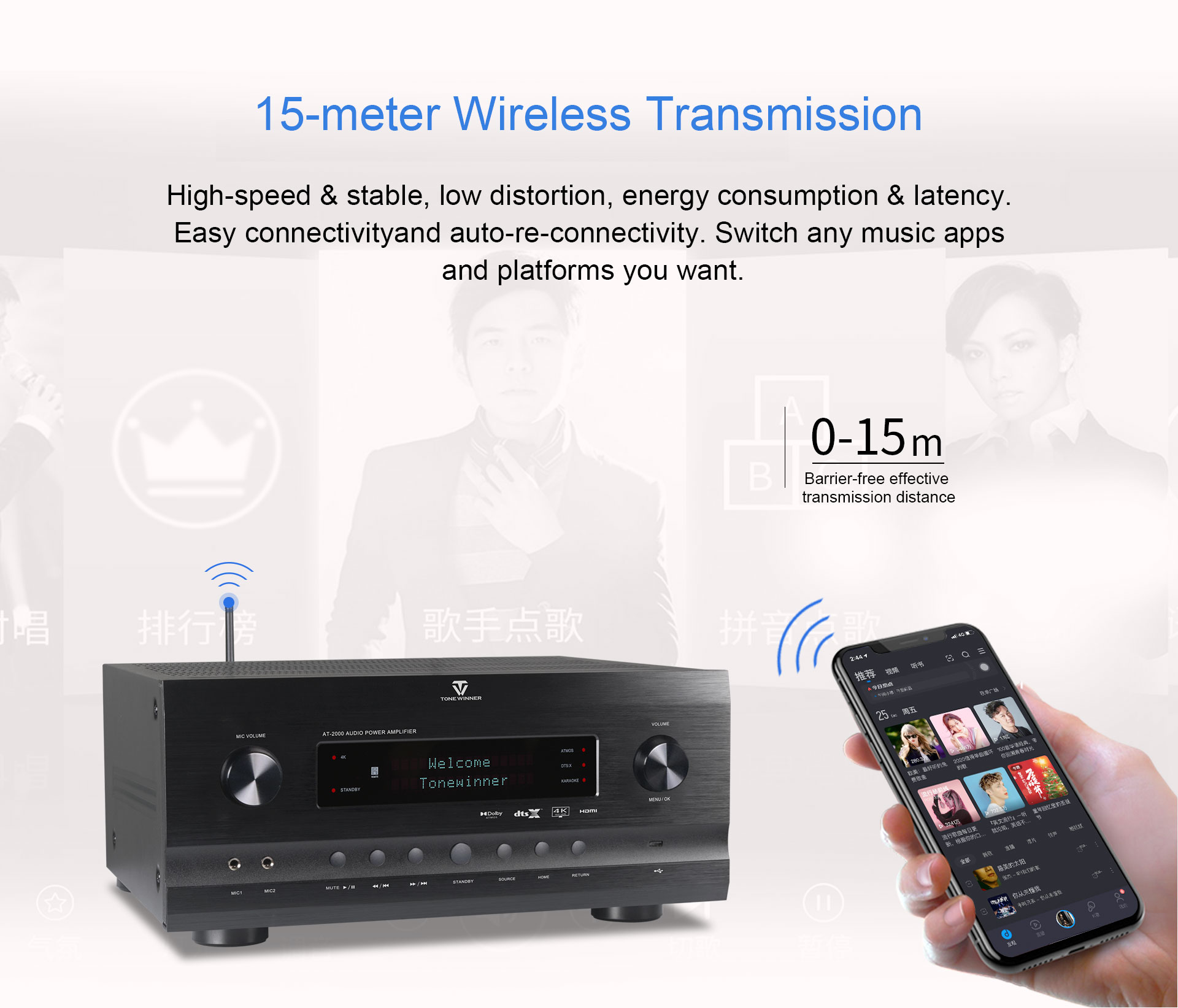 Die Firmware und Software wurden von ToneWinners eigenen Ingenieuren mit originalem Quellcode und Patenten entwickelt und programmiert. Alle Produkte werden nach einheitlichen Standards gefertigt. Dank des breiten Spannungsbereichs von 110 V bis 230 V Wechselstrom ist dieser AV-Receiver weltweit einsetzbar.