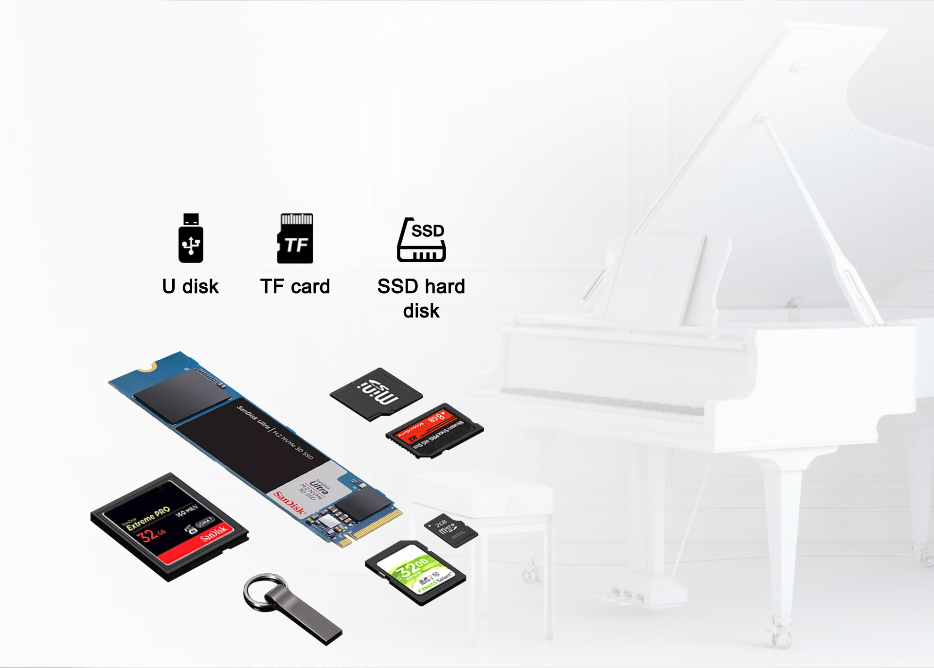 Sie können frei zwischen verschiedenen Tonquellen, Festplatten, U-Disks, TF-Karten usw. wechseln.