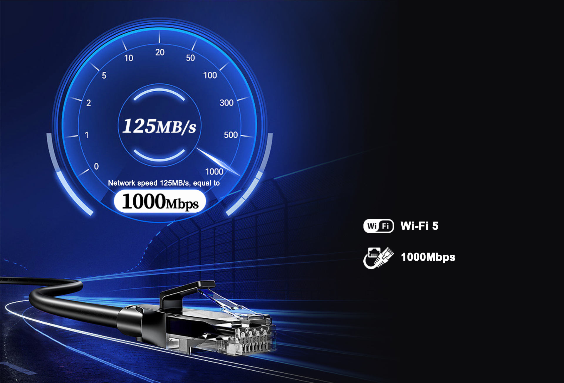 Drahtlose Dualfrequenz-Geschwindigkeitsverbindung, unterstützt Geschwindigkeiten von bis zu 1000 Mbit/s.