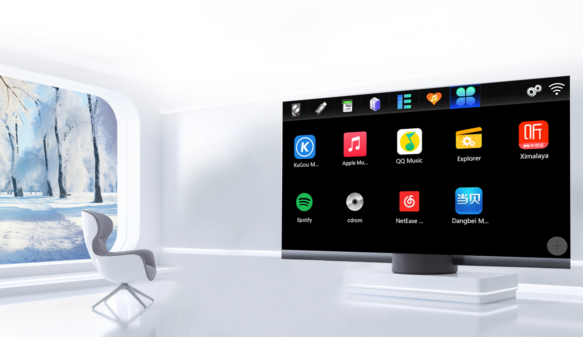 Einzigartiges Musikwiedergabezentrum und TV-Menüverwaltungsschnittstelle,