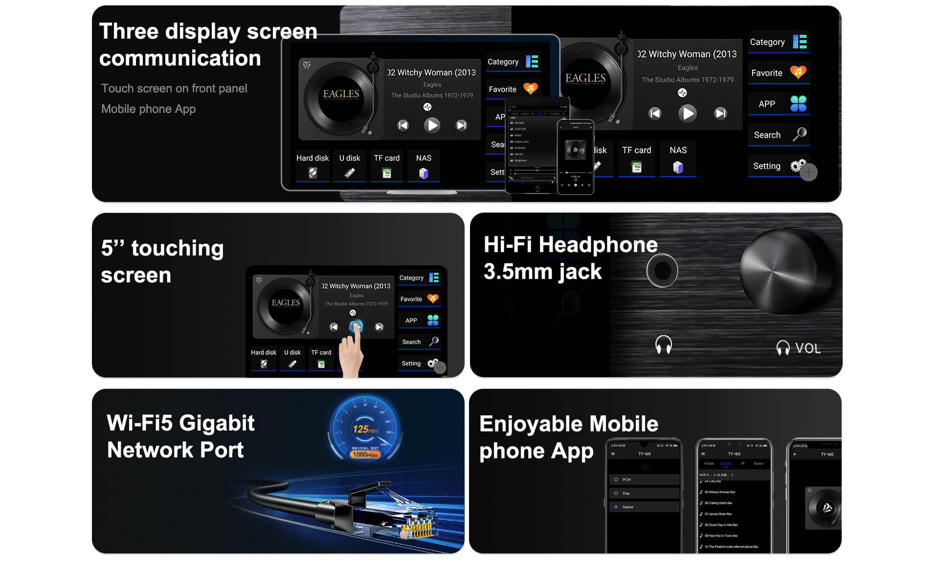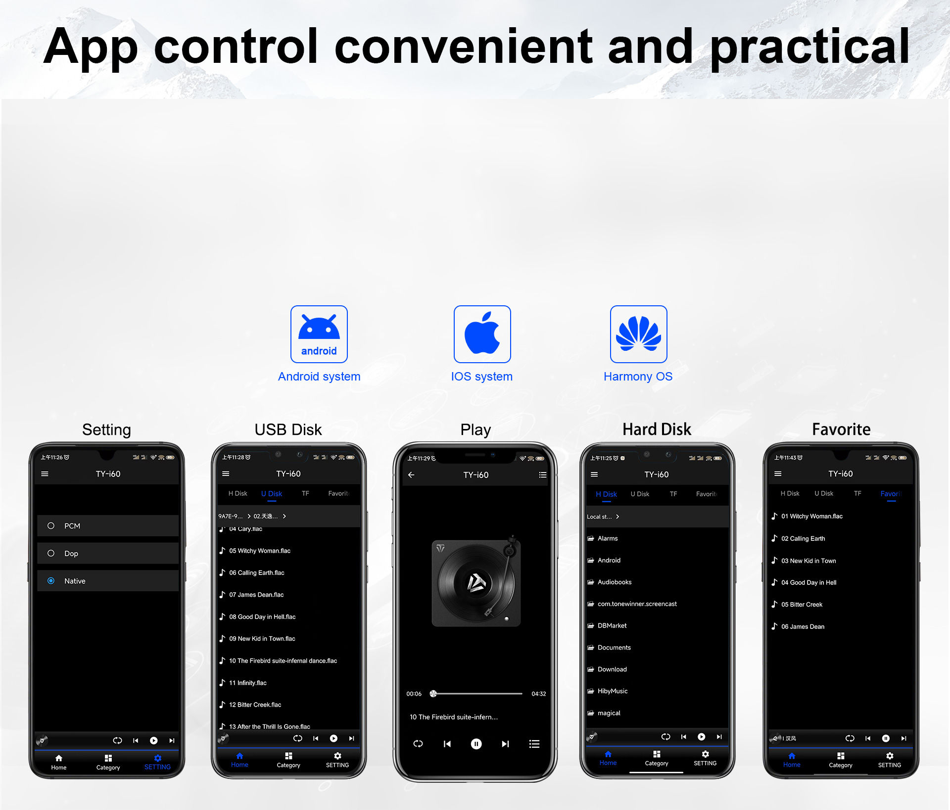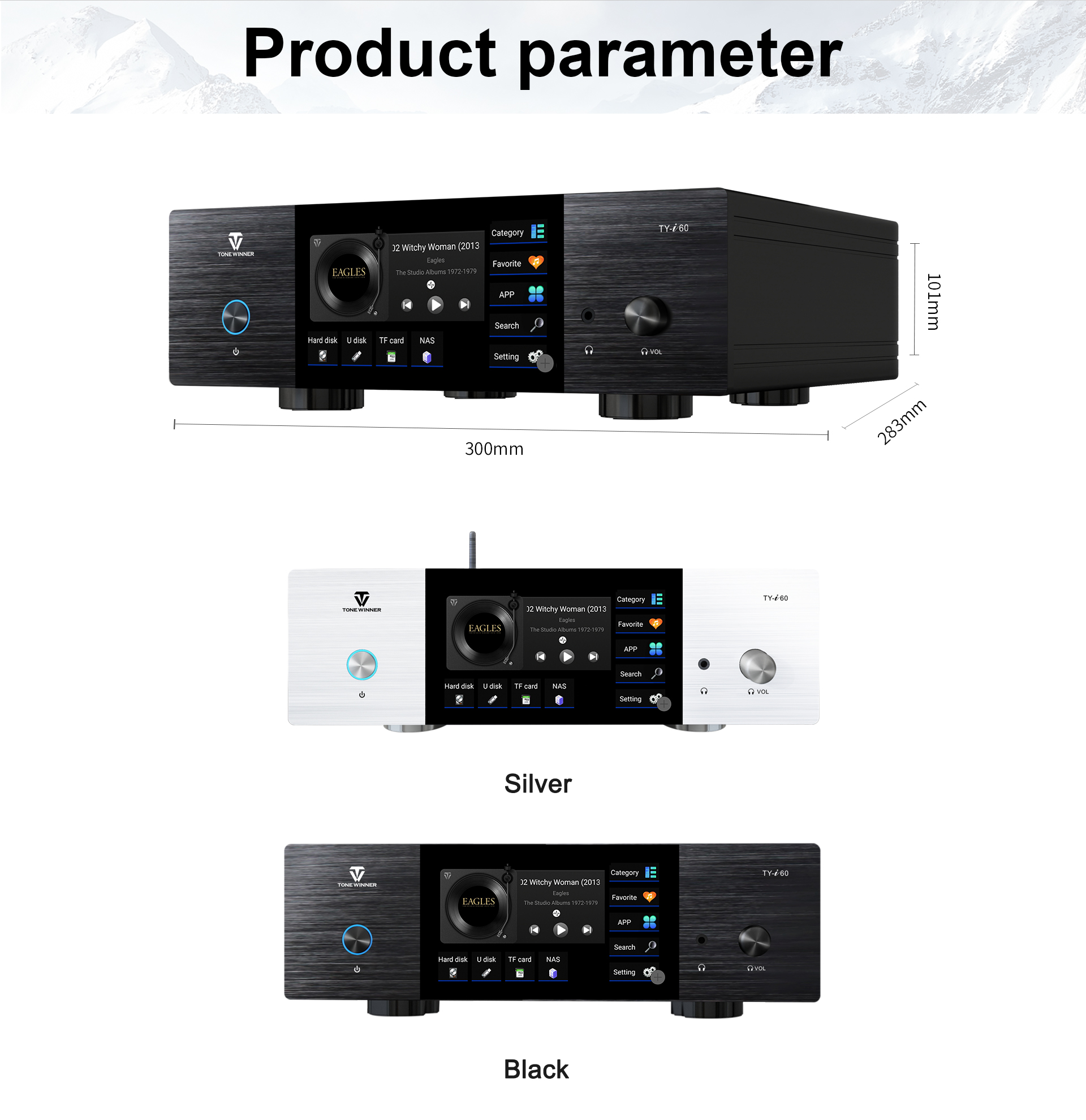 Der TY-i60 ist ein hochwertiger digitaler Musikplayer, der von Tonewinner mit viel Liebe zum Detail entwickelt wurde. Er basiert auf über 30 Jahren Erfahrung und technischer Innovation im Hi-Fi-Design. Er wurde entwickelt, um den höchsten Ansprüchen der Verbraucher an hochwertige, verlustfreie digitale Musik gerecht zu werden.